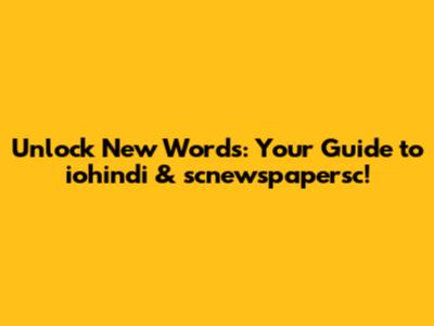 Unlock New Words: Your Guide To Iohindi & Scnewspapersc!