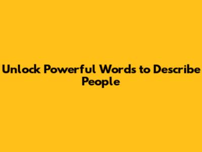 Unlock Powerful Words To Describe People
