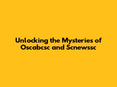 Unlock The Secrets Of Oscabcsc And Scnewssc Today