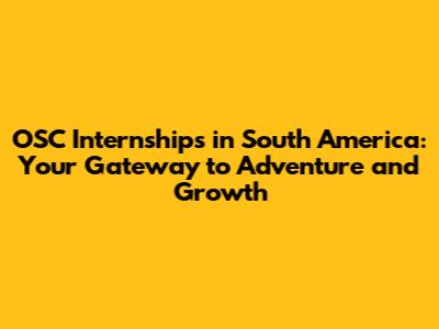 Unlocking Opportunities: OSC Internships In South America
