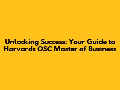 Unlocking Success: Your Guide To Harvard's OSC Master Of Business