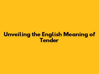 Unlocking The Meaning Of Tender In English