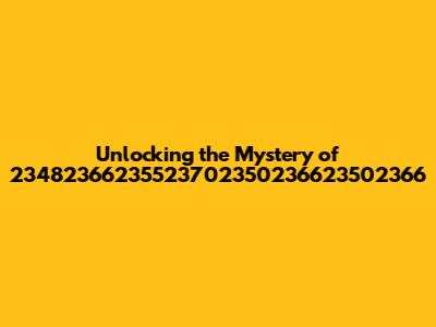 Unlocking The Mystery Of 23482366235523702350236623502366