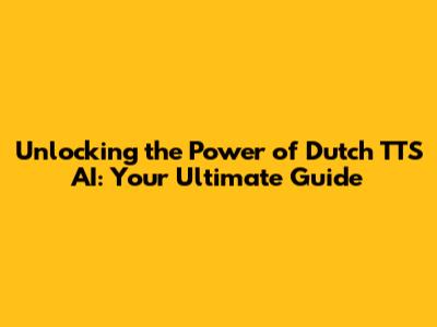 Unlocking The Power Of Dutch TTS AI: Your Ultimate Guide