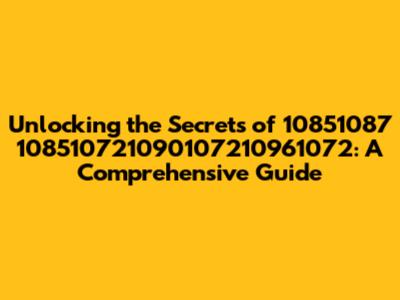 Unlocking The Secrets Of 10851087 108510721090107210961072: A Comprehensive Guide