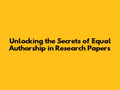 Unlocking The Secrets Of Equal Authorship In Research Papers