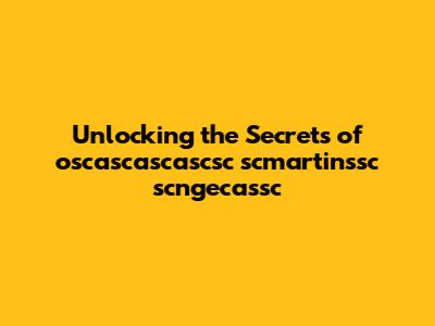 Unlocking The Secrets Of Oscascascascsc Scmartinssc Scngecassc