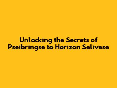 Unlocking The Secrets Of Pseibringse To Horizon Selivese