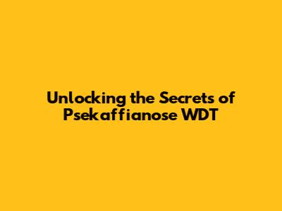 Unlocking The Secrets Of Psekaffianose WDT