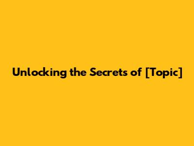 Unlocking The Secrets Of [Topic]