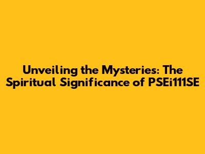 Unlocking The Secrets: PSEi111SE's Spiritual Significance