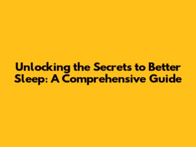 Unlocking The Secrets To Better Sleep: A Comprehensive Guide