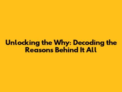 Unlocking The 'Why': Decoding The Reasons Behind It All