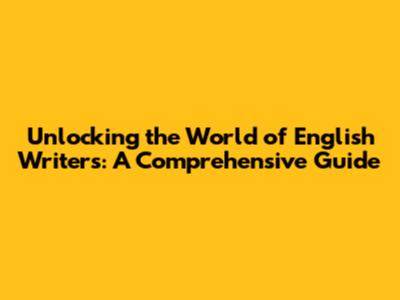 Unlocking The World Of English Writers: A Comprehensive Guide