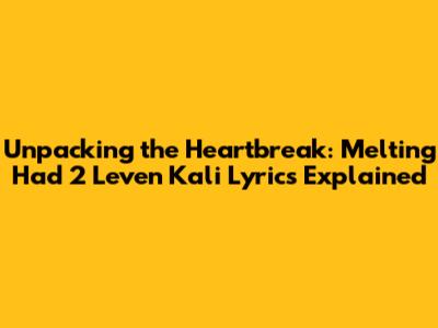 Unpacking The Heartbreak: 'Melting Had 2 Leven Kali' Lyrics Explained