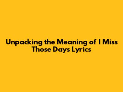 Unpacking The Meaning Of I Miss Those Days Lyrics