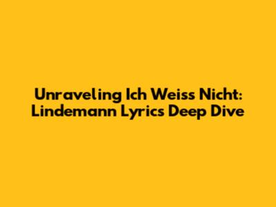 Hey guys! Ever found yourself completely captivated by a song? That's definitely how I feel about "Ich Weiss Nicht" by Lindemann. It's not just a song; it's an experience, a journey through raw emotion and thought-provoking lyrics. Today, we're diving deep into the lyrics of "Ich Weiss Nicht", breaking down the meaning, and exploring the genius behind the words. It's going to be a wild ride, so buckle up! We'll explore the essence of Lindemann's work and understand the story told within this amazing song. Let's decode the enigmatic lines and discover what made "Ich Weiss Nicht" a favorite. We are going to explore the depth of the song, not only the meaning of "ich weiss nicht" which translates to "I don't know" but also the storytelling. Are you ready to dive into the mystery of this fantastic song?