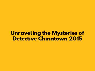 Unraveling The Mysteries Of Detective Chinatown 2015