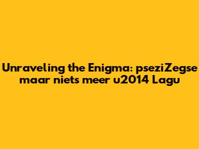 Unraveling The Mystery: PseziZegse Maar Niets Meer U2014 Lagu