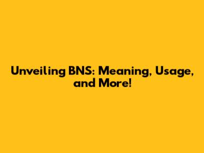 Unveiling BNS: Meaning, Usage, And More!