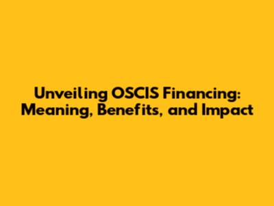 Unveiling OSCIS Financing: Meaning, Benefits, And Impact