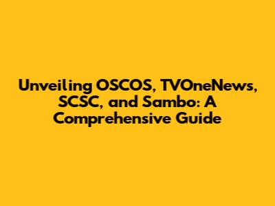 Unveiling OSCOS, TVOneNews, SCSC, And Sambo: A Comprehensive Guide