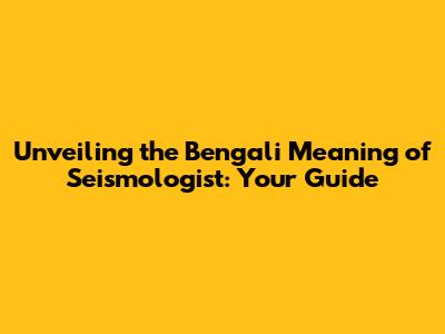 Unveiling The Bengali Meaning Of Seismologist: Your Guide