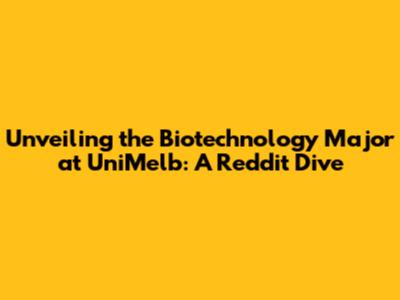 Unveiling The Biotechnology Major At UniMelb: A Reddit Dive
