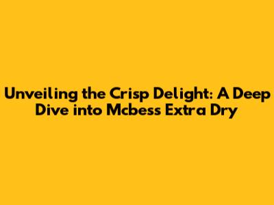 Unveiling The Crisp Delight: A Deep Dive Into Mcbess Extra Dry