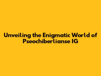 Unveiling The Enigmatic World Of Pseochiberlianse IG