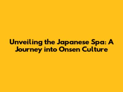 Unveiling The Japanese Spa: A Journey Into Onsen Culture