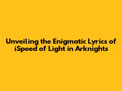 Unveiling The Lyrics: ISpeed Of Light In Arknights