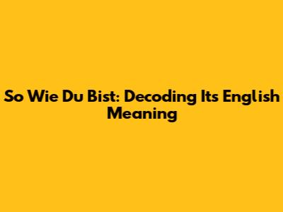 Unveiling The Meaning Of 'So Wie Du Bist' In English