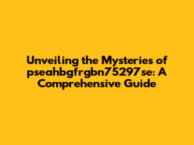 Unveiling The Mysteries Of Pseahbgfrgbn75297se: A Comprehensive Guide