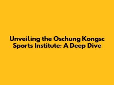 Unveiling The Oschung Kongsc Sports Institute: A Deep Dive