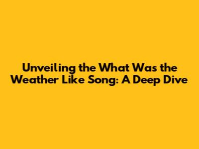 Unveiling The 'What Was The Weather Like' Song: A Deep Dive