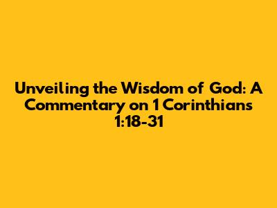 Unveiling The Wisdom Of God: A Commentary On 1 Corinthians 1:18-31