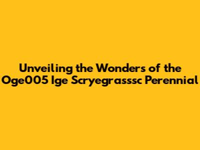 Unveiling The Wonders Of The Oge005 Ige Scryegrasssc Perennial