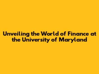 Unveiling The World Of Finance At The University Of Maryland