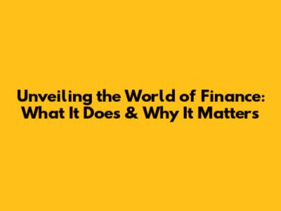 Unveiling The World Of Finance: What It Does & Why It Matters