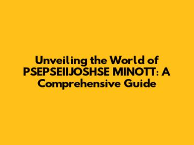 Unveiling The World Of PSEPSEIIJOSHSE MINOTT: A Comprehensive Guide