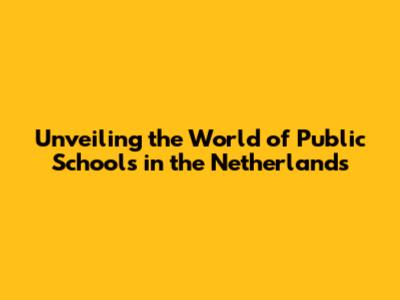 Unveiling The World Of Public Schools In The Netherlands