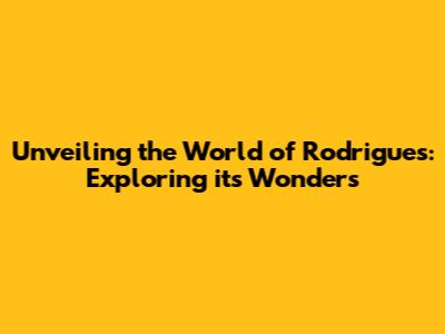 Unveiling The World Of Rodrigues: Exploring Its Wonders