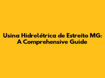 Usina Hidrelétrica De Estreito MG: A Comprehensive Guide