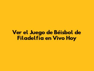 Ver El Juego De Béisbol De Filadelfia En Vivo Hoy