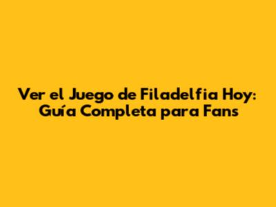 Ver El Juego De Filadelfia Hoy: Guía Completa Para Fans
