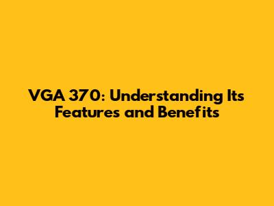VGA 370: Understanding Its Features And Benefits