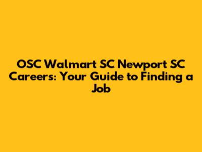 - Indeed: Indeed.com is a popular job search engine that aggregates listings from various sources, including company websites and recruitment agencies. Search for "Walmart Newport SC" to see if any OSC positions are listed.
