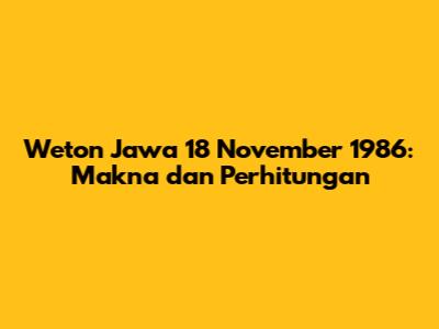 Weton Jawa 18 November 1986: Makna Dan Perhitungan