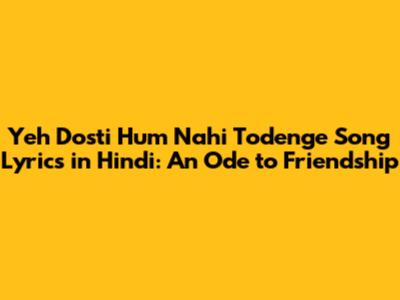 Yeh Dosti Hum Nahi Todenge encapsulates the essence of true friendship through its simple yet profound lyrics. Each verse resonates with the unwavering commitment and mutual support that define such bonds. LetтАЩs break down the lyrics to truly appreciate their depth.